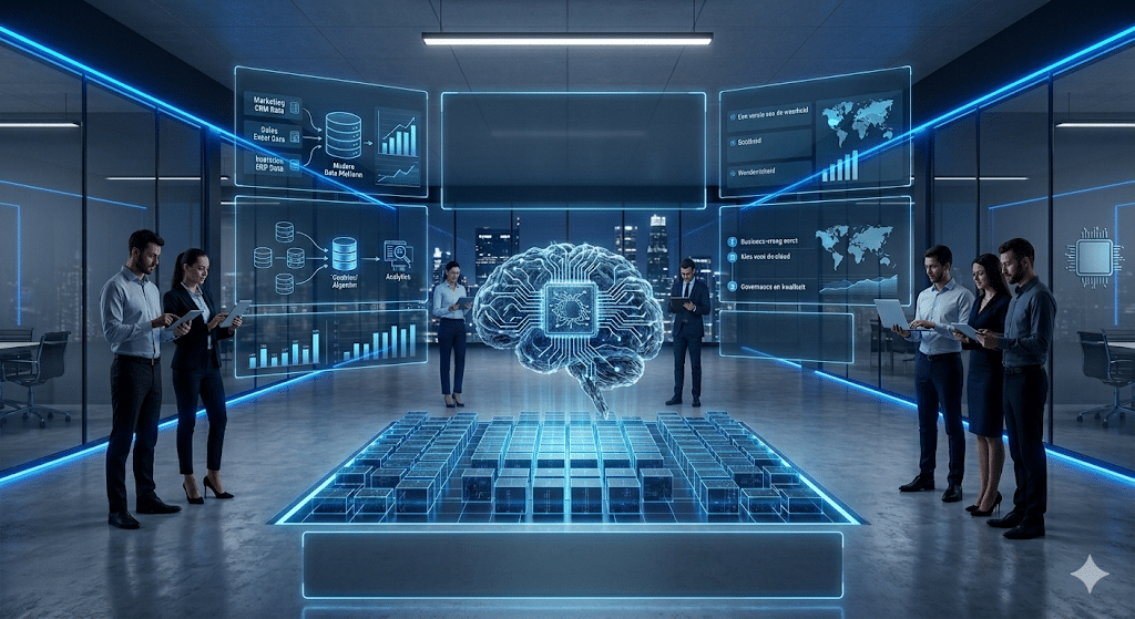De grootste vijand van betrouwbare voorspellingen is versnipperde informatie. Marketing heeft klantdata in CRM staan, sales gebruikt Excel en logistiek werkt in een ERP-systeem. Zonder een centraal platform zijn de voorspellingen gebaseerd op halve waarheden. Een modern dataplatform fungeert daarom als de ‘centrale keuken‘ waar alle ingrediënten (data) worden verzameld, gewassen en klaargezet voor de chef (analytics/algoritme).
